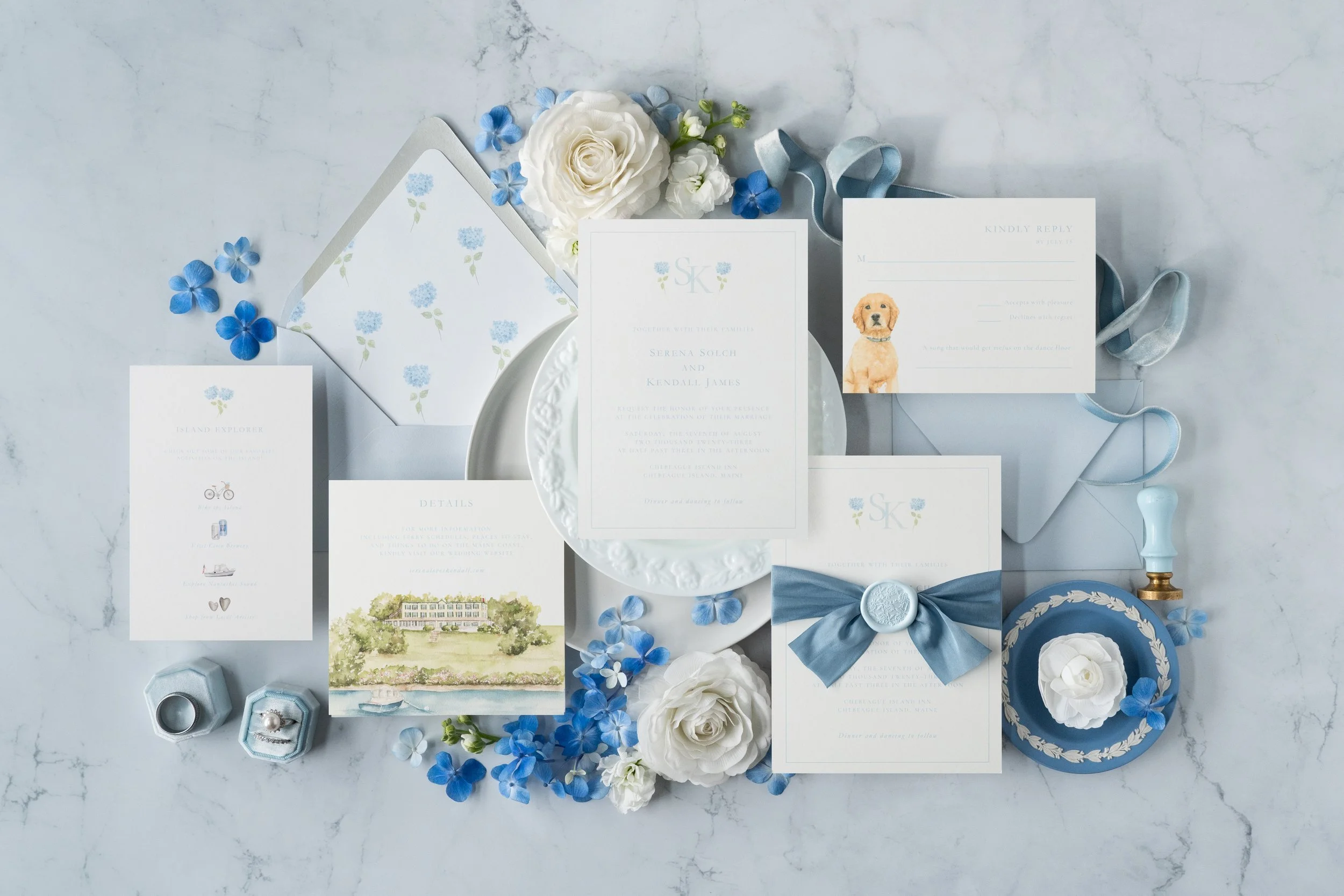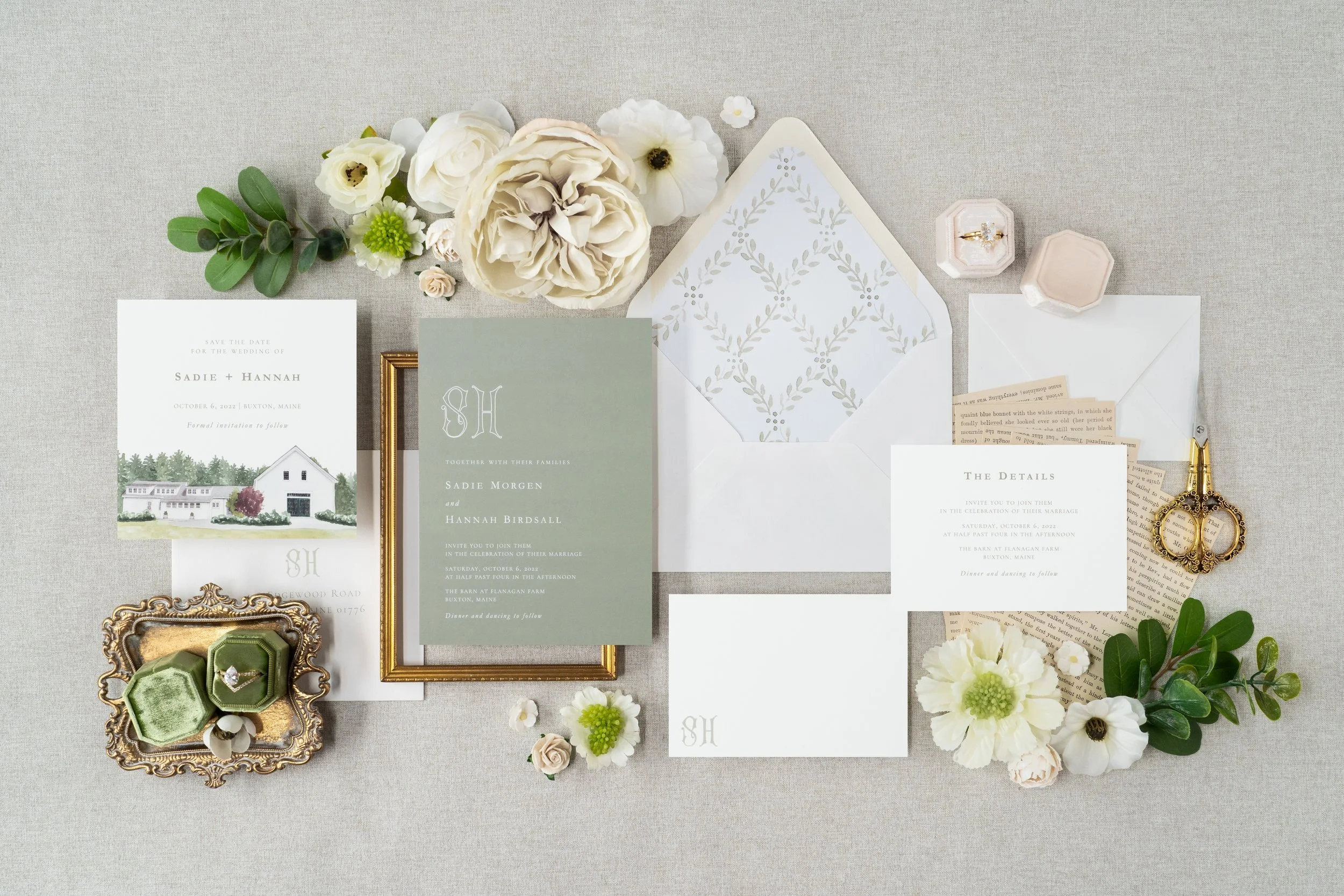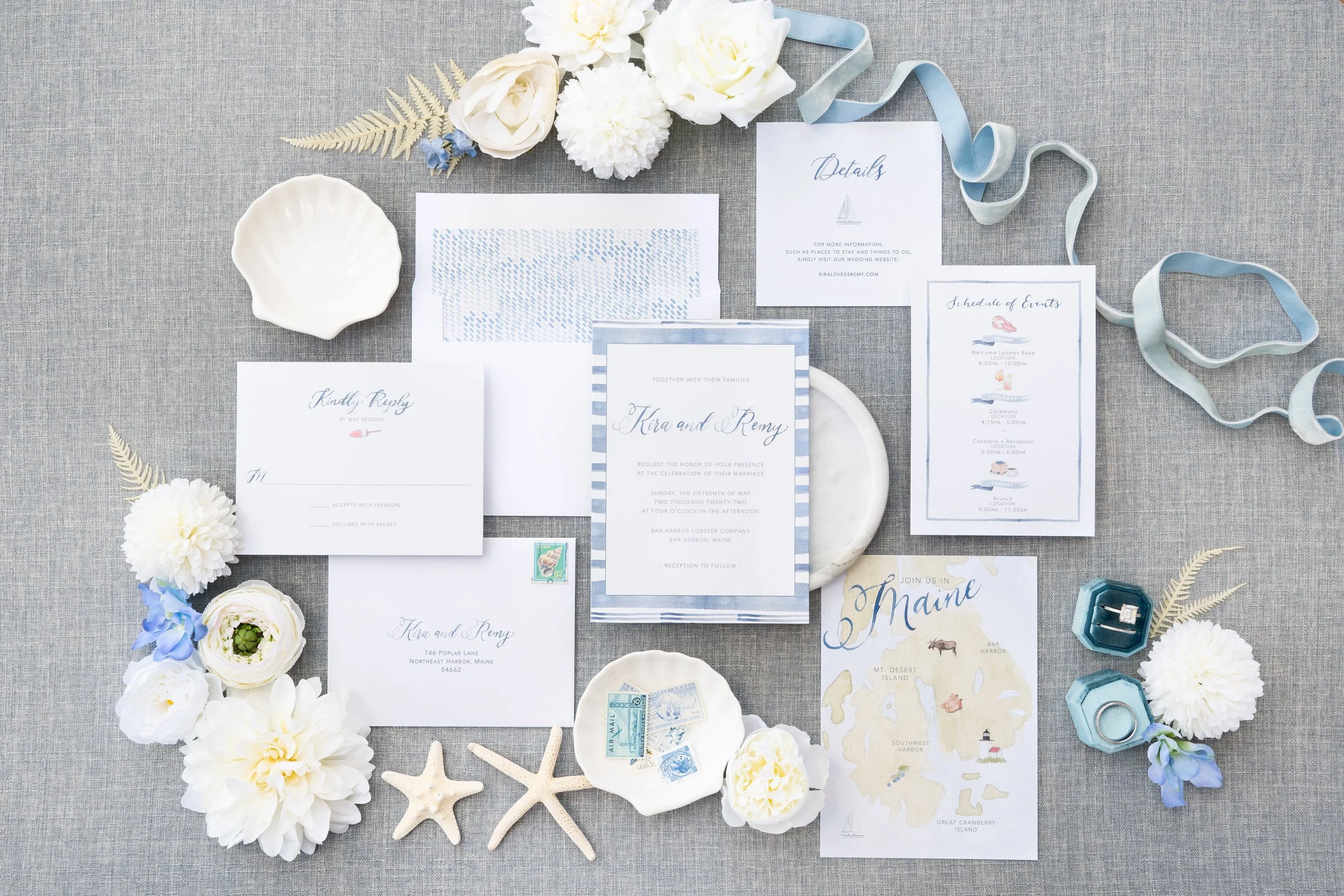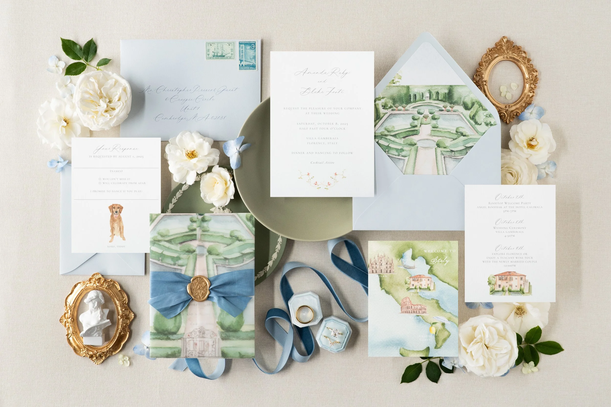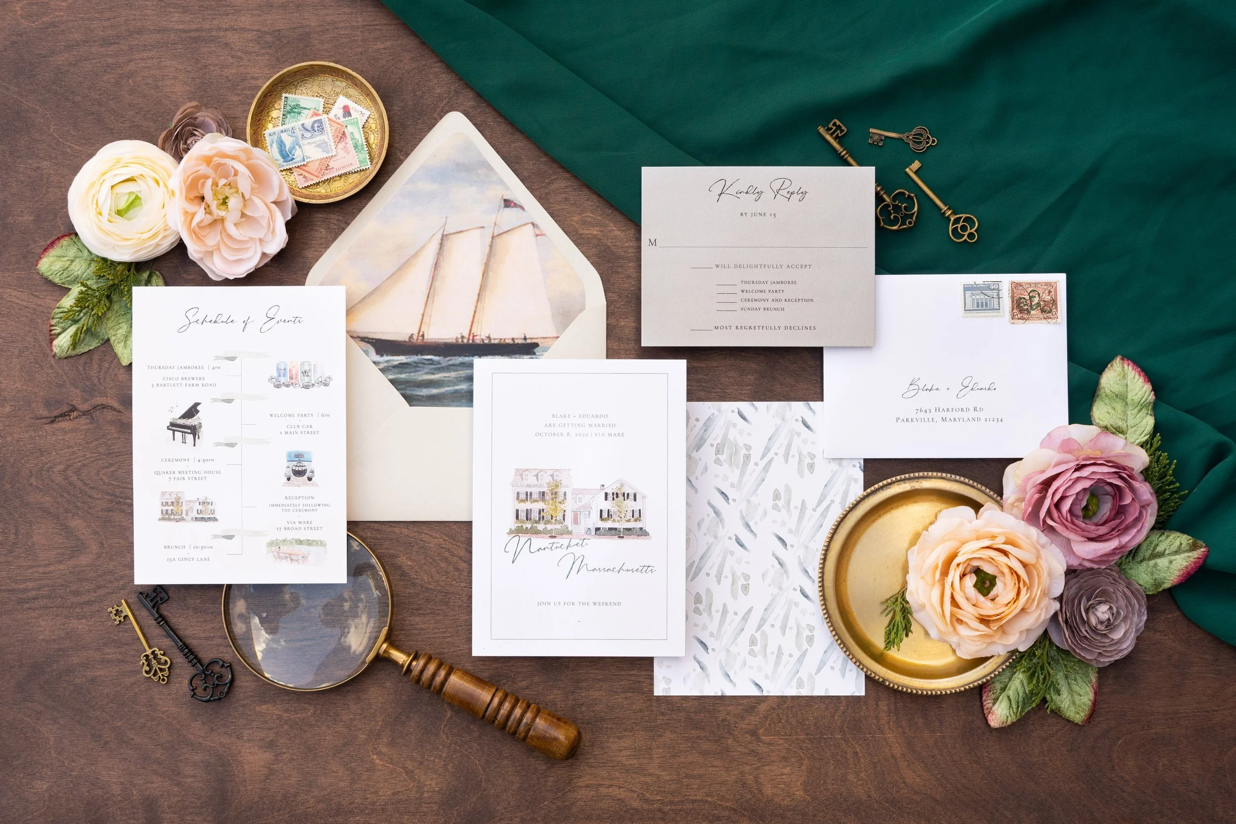 Consultation + design calls, custom artwork, color matching, invitation assembly and mailing, and specialty printing are reserved exclusively for our custom projects.