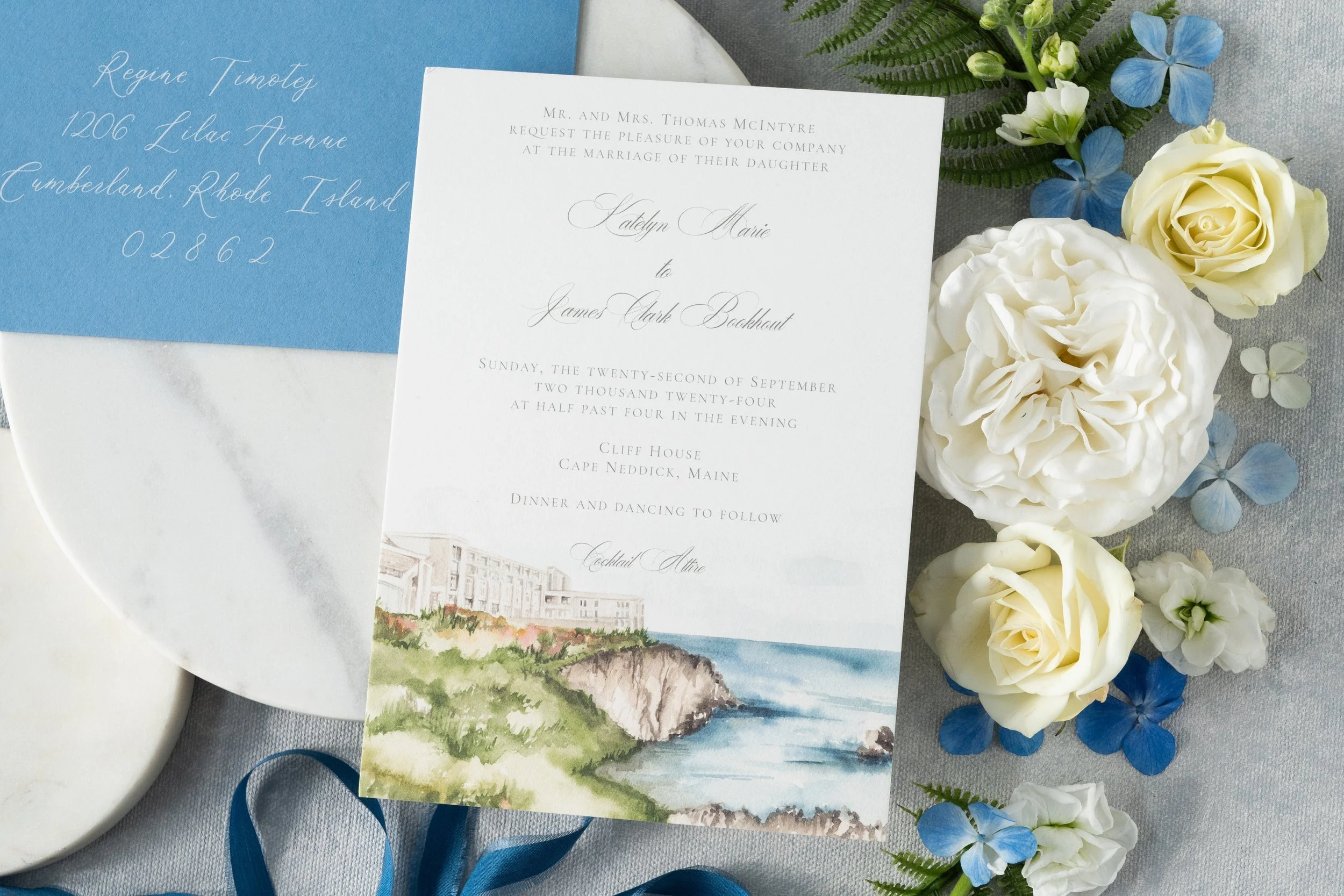 When It’s Needed: Recommended for destination weddings or peak-season events, typically sent 8-12 months prior to the wedding. If couples are looking to reallocate stationery funds to their invitation suite and day-of papers, a less formal/online Save the Date will suffice.